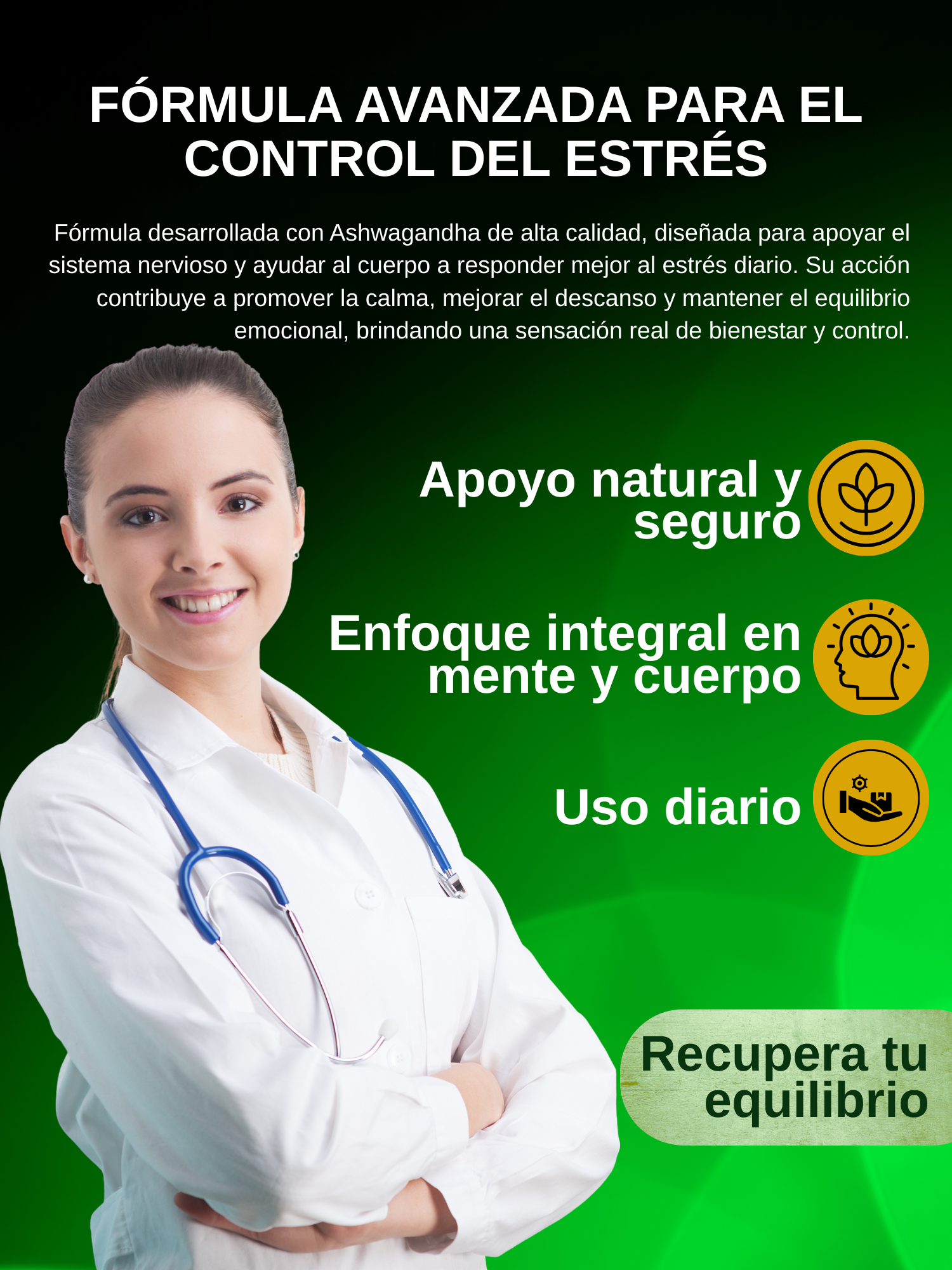 Elimina el impacto del estrés, mejorar el descanso y brindar bienestar mental de forma natural.